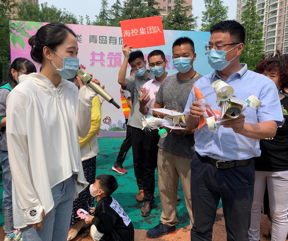 活動首先開展垃圾分類知識宣傳,志愿者通過現場宣講、向居民分發宣傳單頁等方式介紹垃圾分類的必要性和重要性;在模擬垃圾投放知識競答環節,集團志愿者與社區居民一起組成答題組,積極參與、競相答題,并以最高積分獲得一等獎;在“變廢為寶”現場創意環節,集團志愿者與社區居民一起通過廢舊物品再利用,制作出了“飛機”“火箭”“汽車”等優秀作品,在社區居民的集體評選中,斬獲全場“最佳創意獎”。