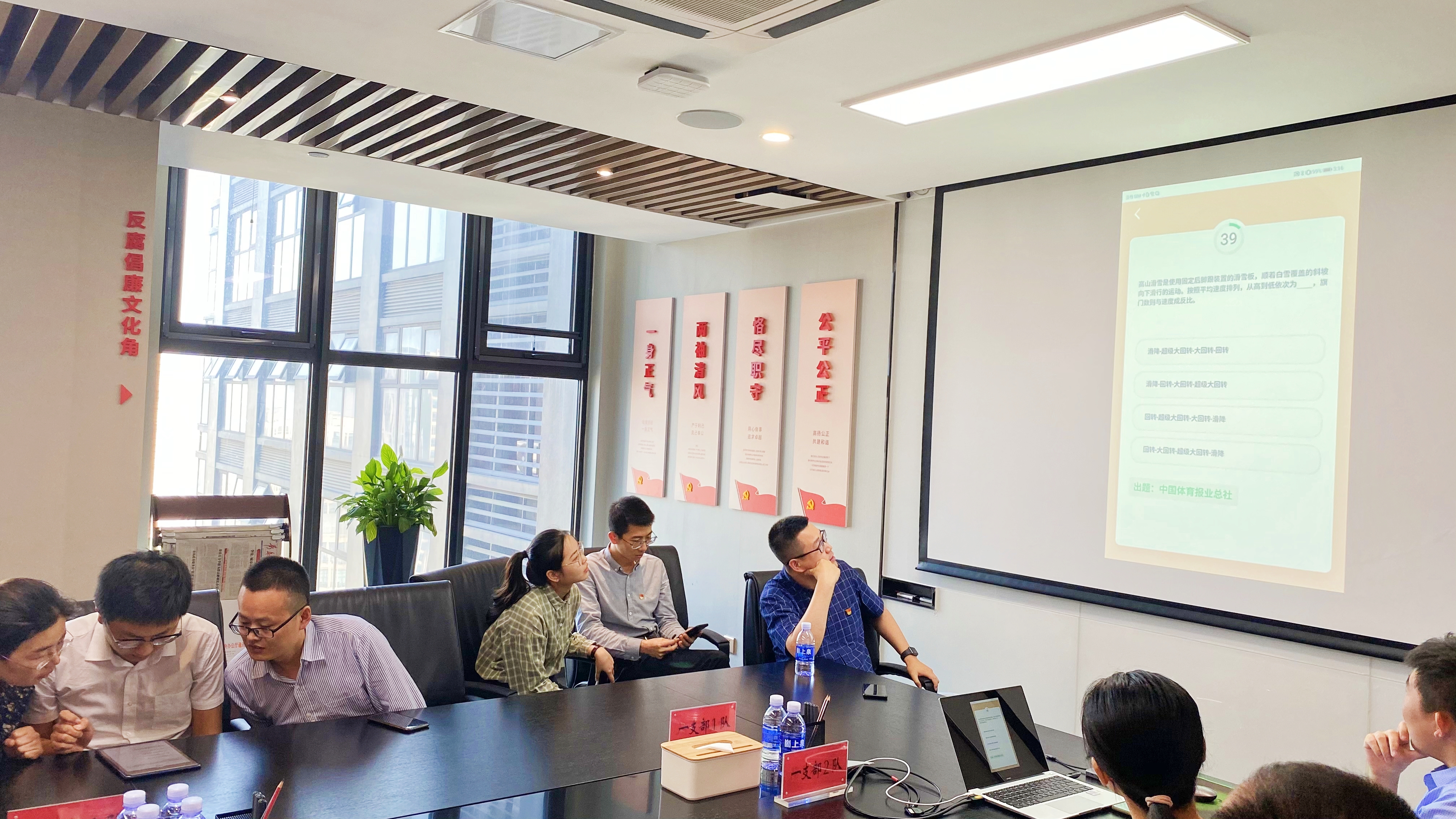 競賽共分為團(tuán)隊(duì)競答、挑戰(zhàn)答題、黨史知識“你畫我猜”三個(gè)環(huán)節(jié),集團(tuán)三個(gè)黨支部各派出兩支隊(duì)伍參賽。各隊(duì)選手認(rèn)真作答、全情投入,現(xiàn)場氛圍十分活躍。