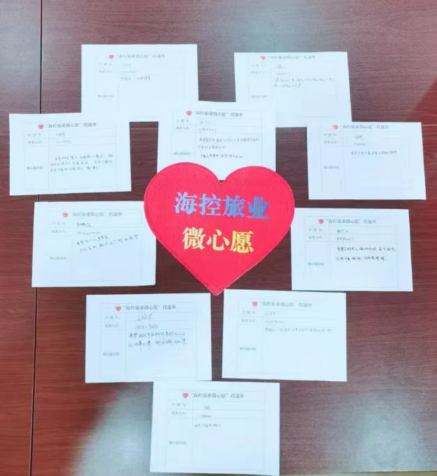 備注:旅業(yè)“微心愿”是海控旅業(yè)“一項公益、兩個陣地、三微動態(tài)”黨建品牌矩陣建設(shè)模塊之一,采取“員工訴說、支部接單”模式,將“微心愿”變?yōu)椤拔椭?,通過點滴小事,傳遞黨組織溫暖。