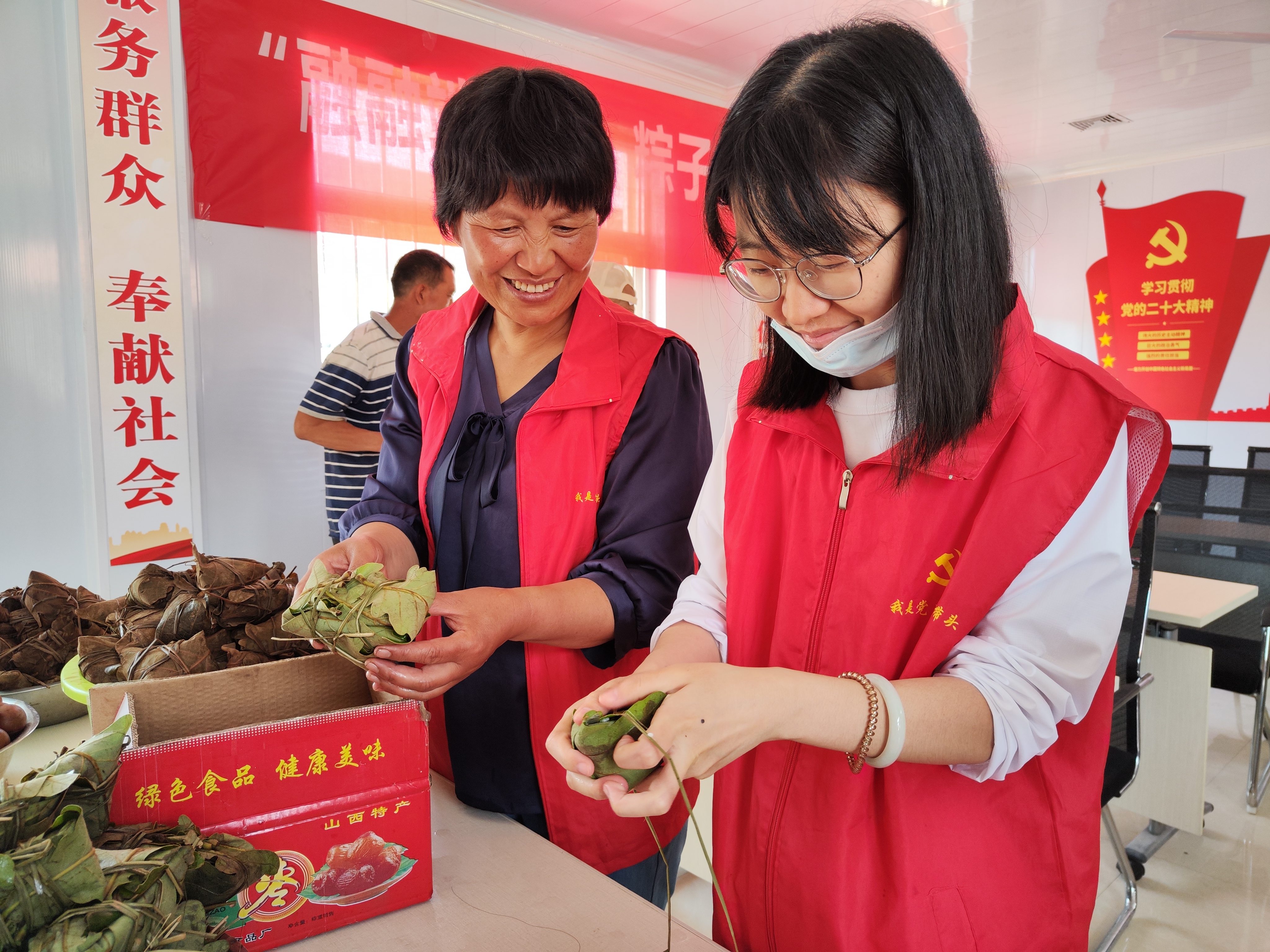 此外,為豐富聯建共建內容,端午節期間集團第三黨支部和旅業黨支部組織黨員志愿者與前立柱村、豐美莊村開展了“情暖端午”文化活動,通過與村里黨員群眾一起包粽子,進一步弘揚了傳統節日文化,同時將粽子送到孤寡老人和困難群眾家中,為他們送去關懷與溫暖,有效密切了黨群關系。