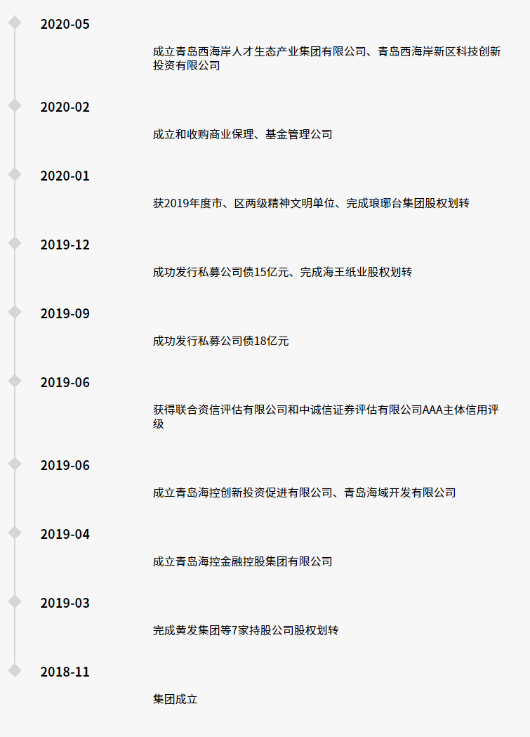 成立青島西海岸人才生態產業集團有限公司、青島西海岸新區科技創新投資有限公司;成功發行10億元中期票據