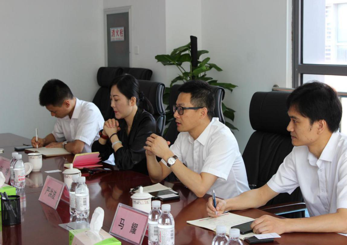 陪同人員首先向嚴總一行介紹了一樓交易大廳的具體情況和后期業務開展計劃。隨后雙方前往會議室進行座談交流。