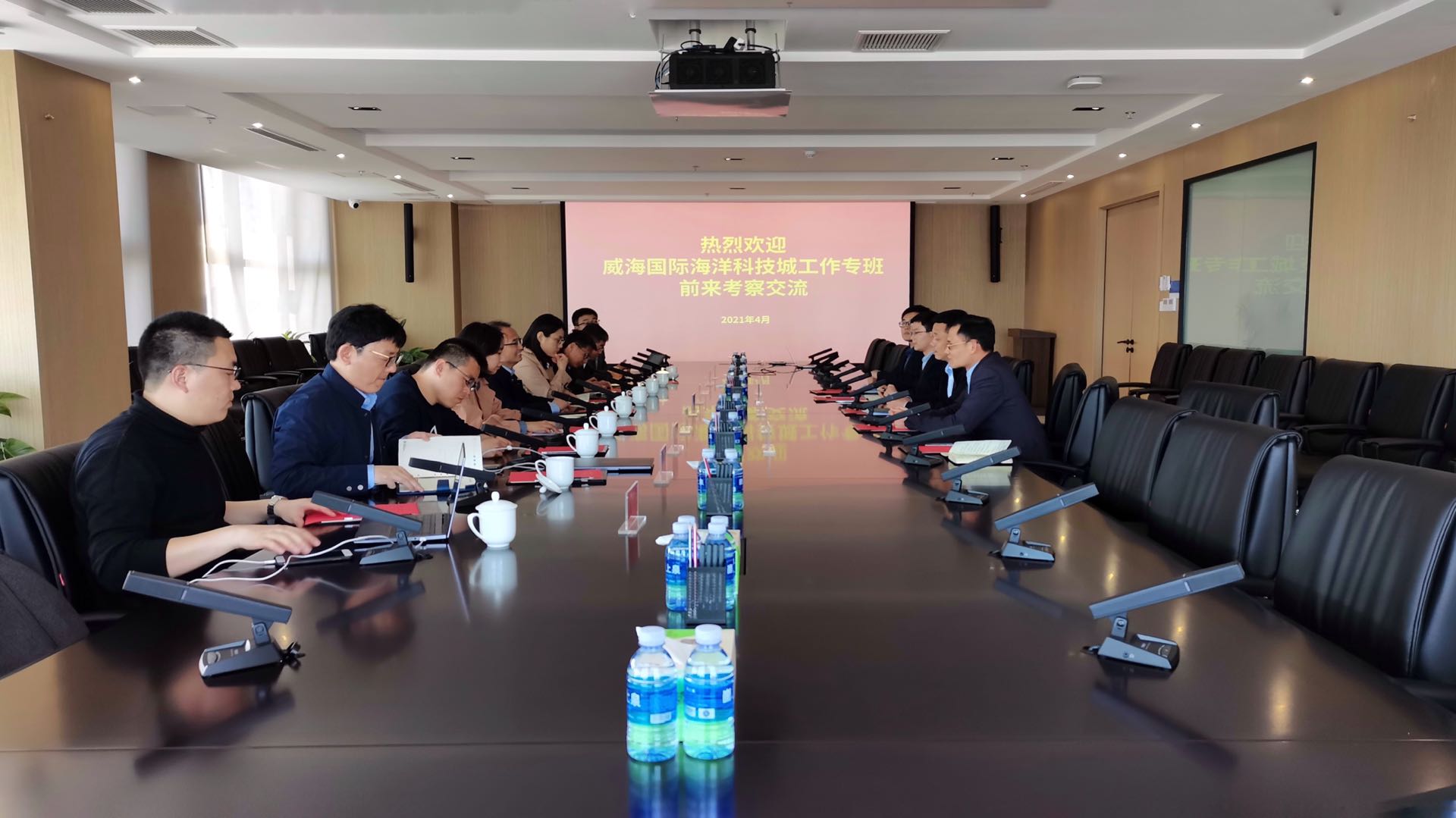 4月19日,威海國際海洋科技城建設推進工作專班(以下簡稱“工作專班”)一行到訪??丶瘓F調研學習,??丶瘓F黨委副書記王文景,投融資運營部、戰略發展部等部門負責人陪同交流。
