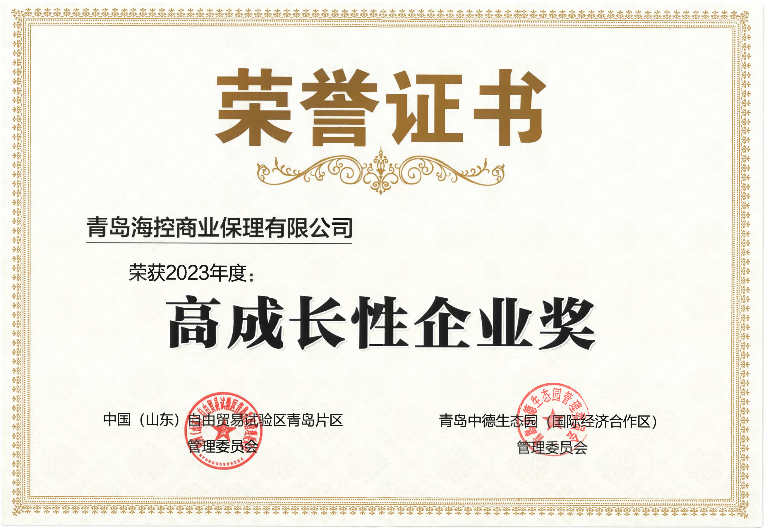 3月5日,中國(山東)自由貿易試驗區青島片區2024 企業發展大會隆重召開,青島海控商業保理有限公司(以下簡稱“海控保理”)榮獲2023年度“高成長性企業獎”。
